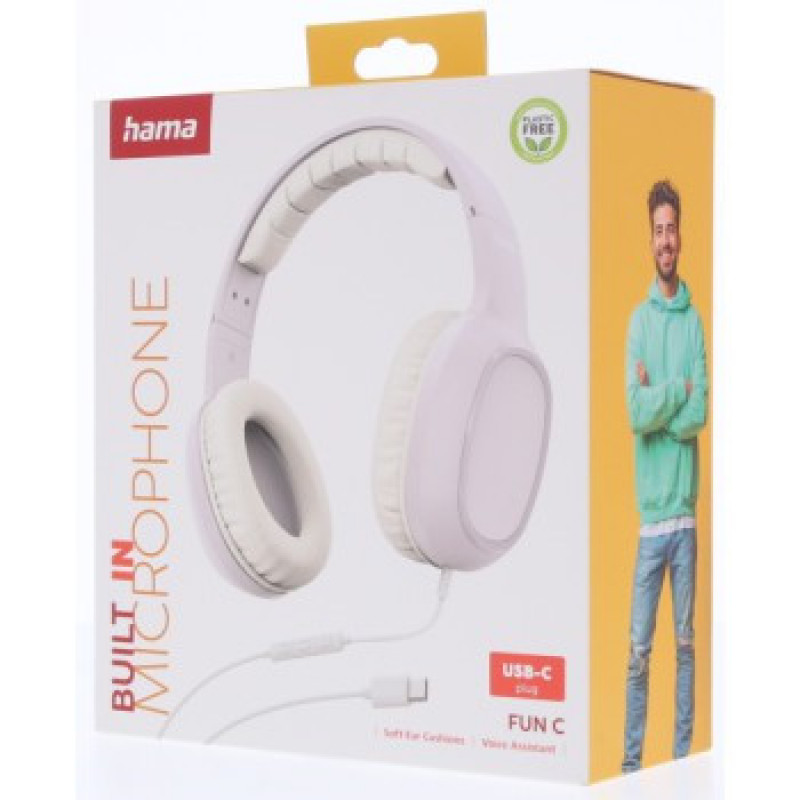 Hama USB-C slúchadlá s mikrofónom Fun C, uzavreté, biele