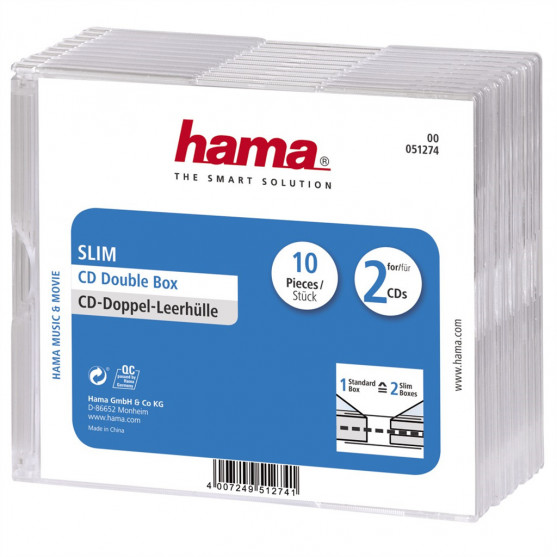 Hama CD Slim Double Box, obal na 2 cd/dvd, priehľadný, balenie 10 ks (cena za balenie)