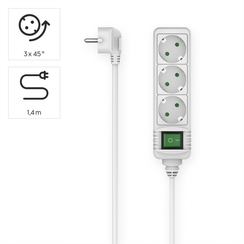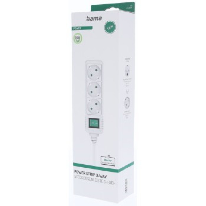 Hama predlžovací prívod s vypínačom, 3x zásuvka schuko, 1,4 m, biely