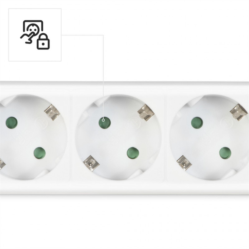 - nemecký štandard zásuviek schuko (uzemňovacie kontakty na okraji), vhodné pre bežne používané unischuko vidlice (nevhodné pre staršie guľaté vidlice bez bočných kontaktov)