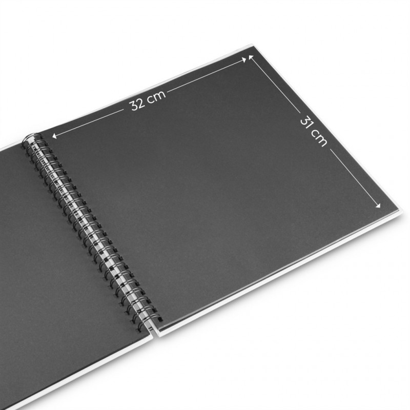 - čierne vnútorné listy poskytujú priestor pre vaše príbehy a spomienky (fotografie, kresby, texty, pohľadnice, vstupenky …)
