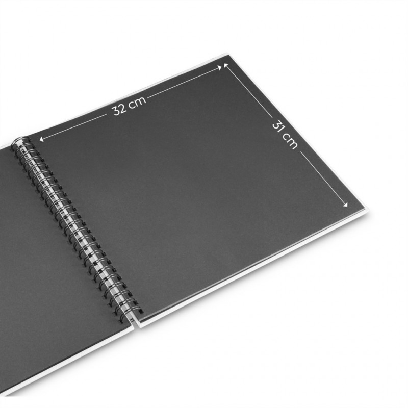 - čierne vnútorné listy poskytujú priestor pre vaše príbehy a spomienky (fotografie, kresby, texty, pohľadnice, vstupenky …)