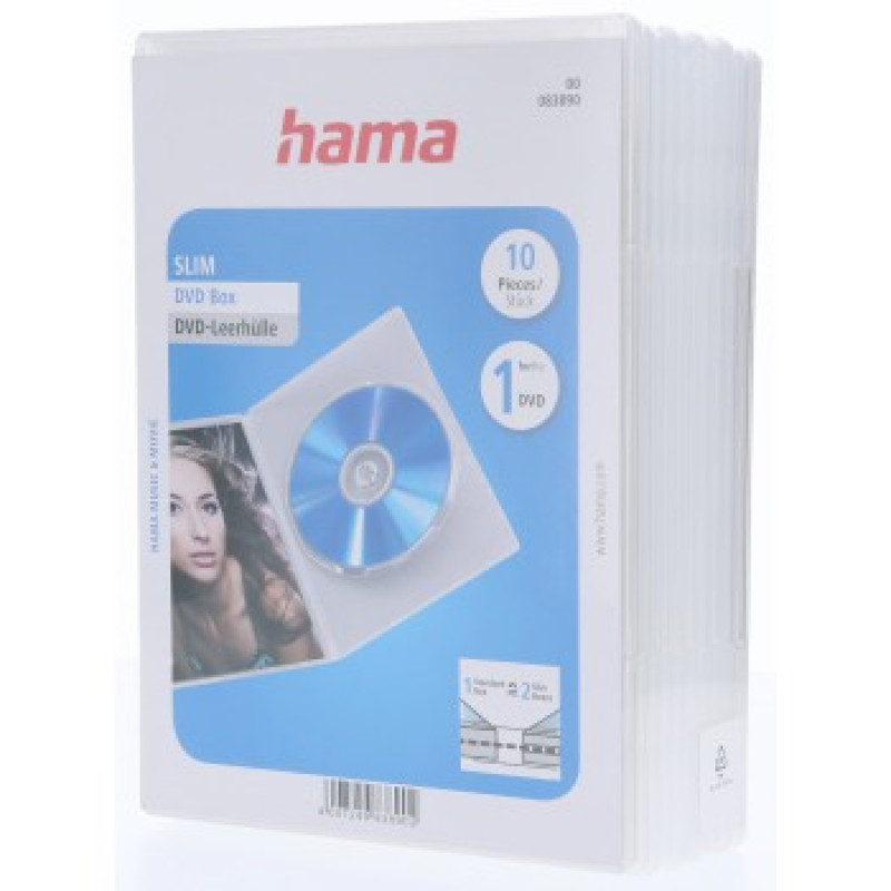 Hama Slim, obal na 1 DVD, s fóliou, priehľadný, balenie 10 ks (cena za balenie)
