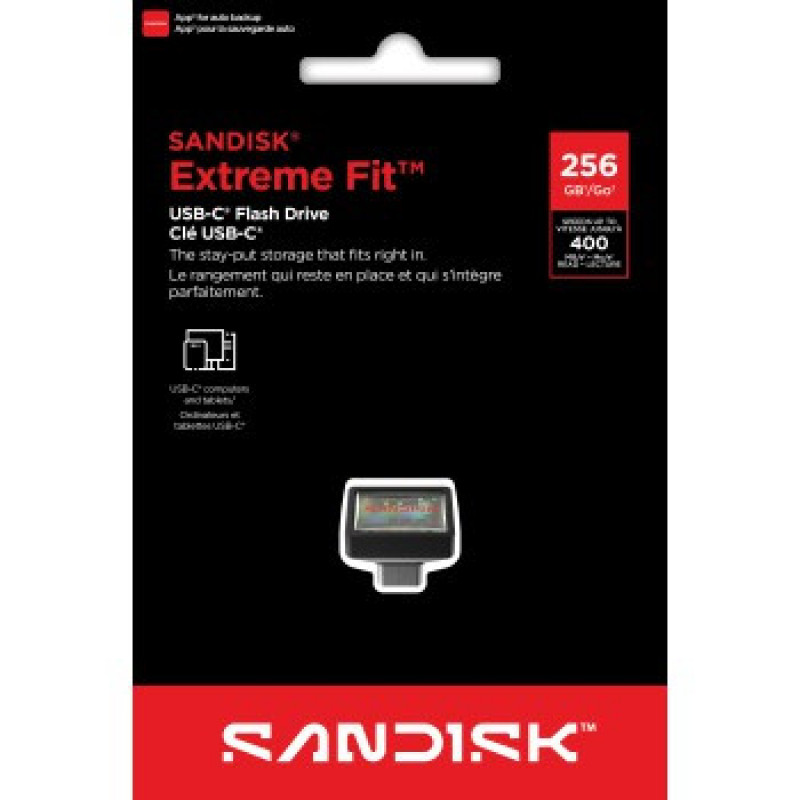 SanDisk Extreme Fit USB-C Flash Drive USB 256 GB Flashdrives 400 MB/s, čierna