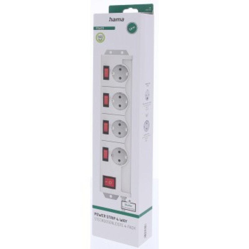 Hama predlžovací prívod XL, 4 zásuvky schuko, 5 vypínačov, 1,4 m, biela