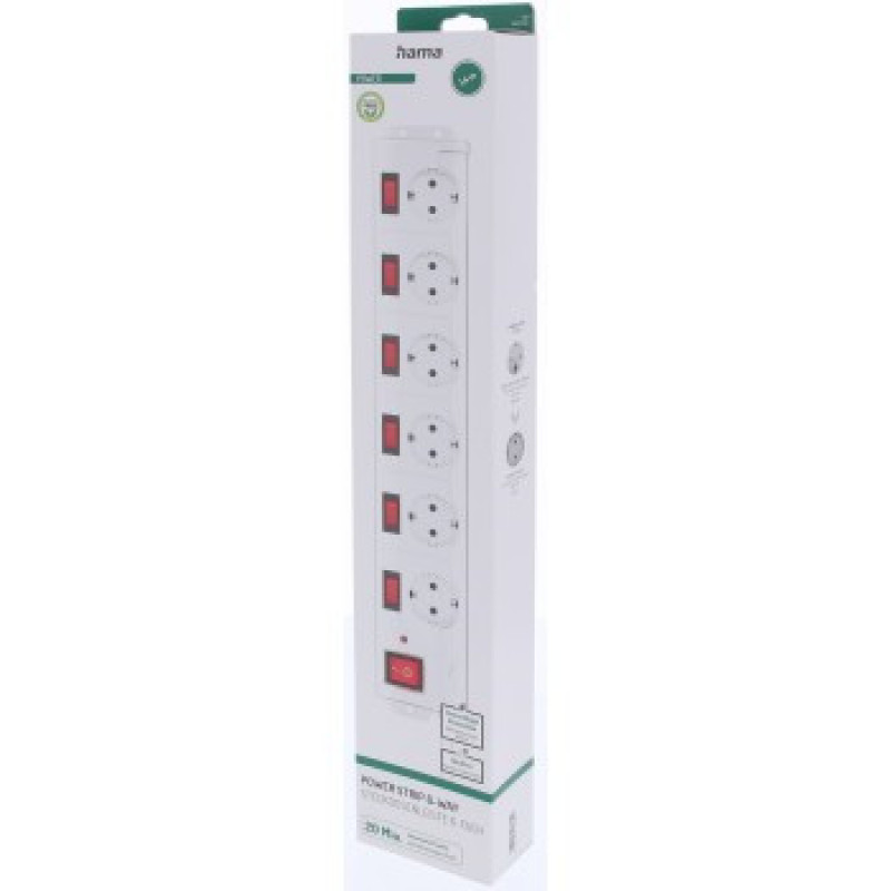 Hama prepäťová ochrana XL, 6 zásuviek schuko, 7 vypínačov, 1,4 m, biela