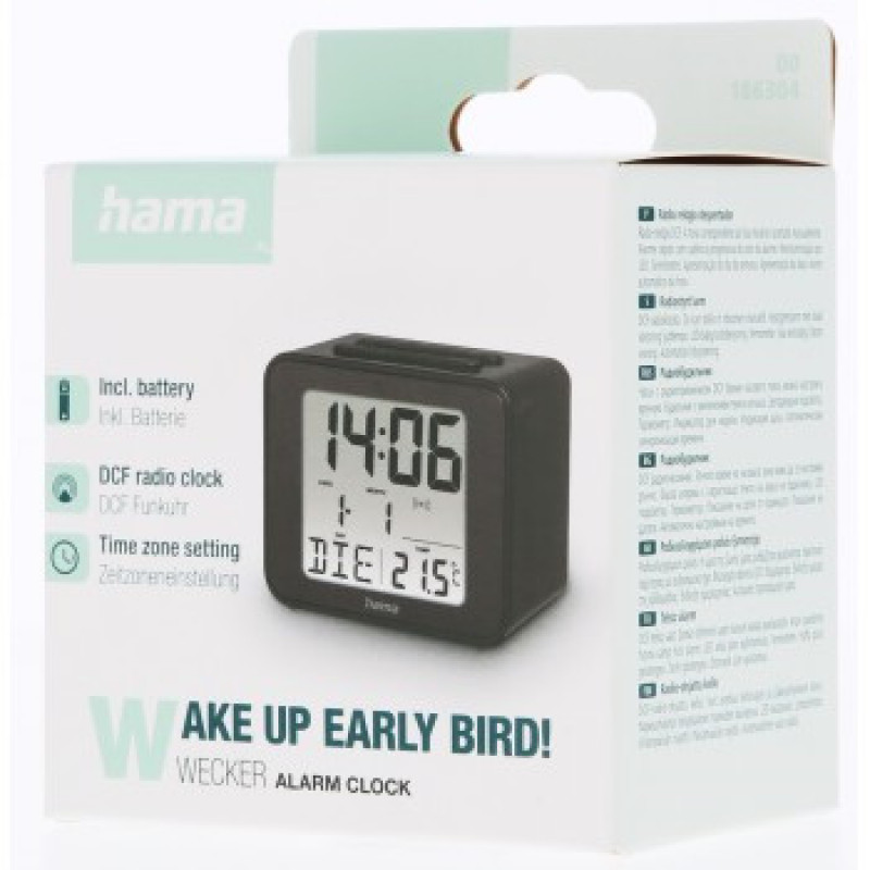 Hama Cube, digitálny budík, riadený rádiovým signálom, čierny