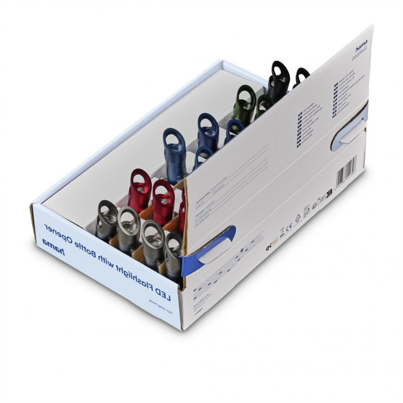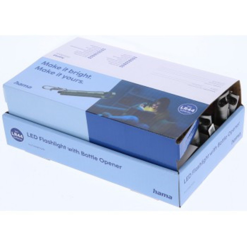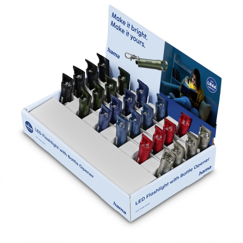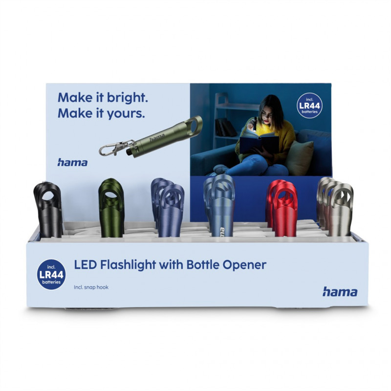 Hama FL4, LED baterka s otváračom na fľaše, karabínka, batérie, 24 ks v displeji (cena za 1 ks)