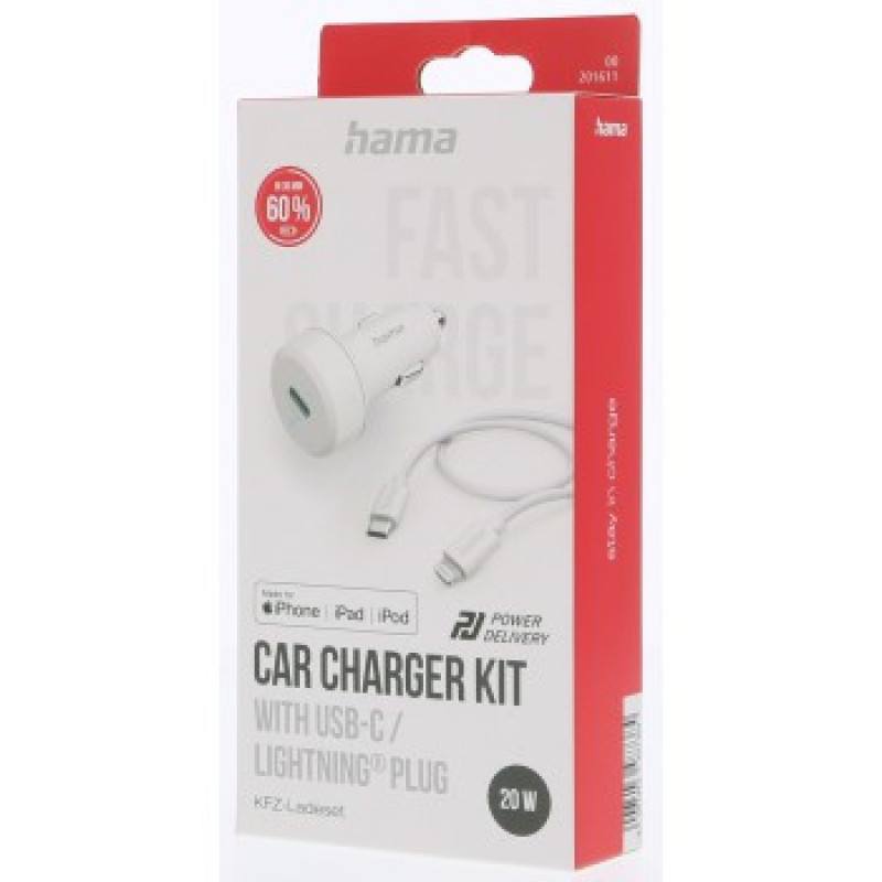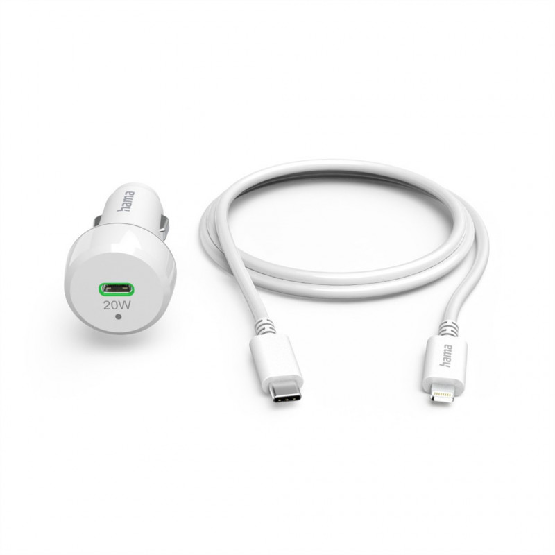 Hama set: rýchla USB nabíjačka do vozidla USB-C PD 20 W + kábel USB-C Lightning 1 m
