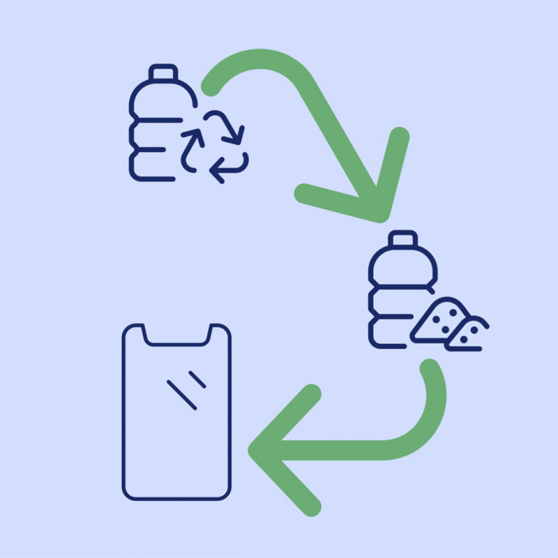 - 100% ochrany displeja a podpornej fólie je vyrobených z recyklovaného PET materiálu (rPET) = až o 50% menej spotrebovanej energie a iba 33% CO2 emisií ako pri výrobe bežných nových PET produktov