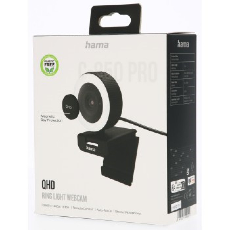 Hama PC webkamera s kruhovým svetlom X850 Pro, QHD, autofokus, diaľkový ovládač