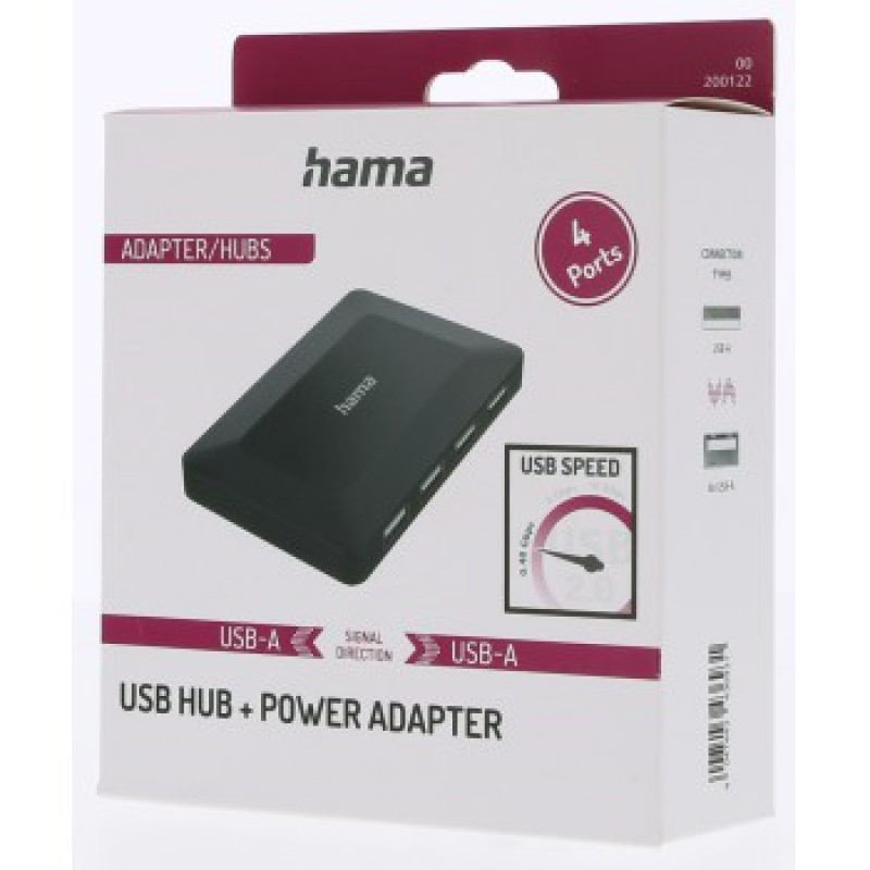 Hama USB hub, 4 porty, USB2.0, napájací zdroj