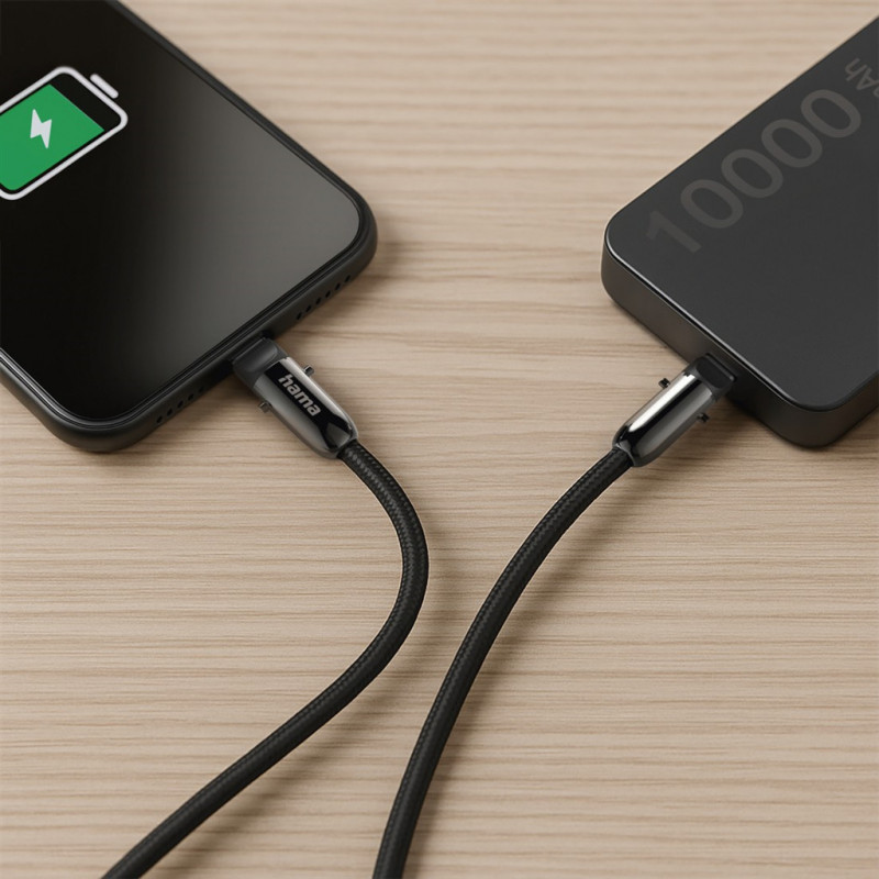 Hama USB-C kábel a šnúrka na mobil 2v1, dĺžka 1,2 m, farba čierna
