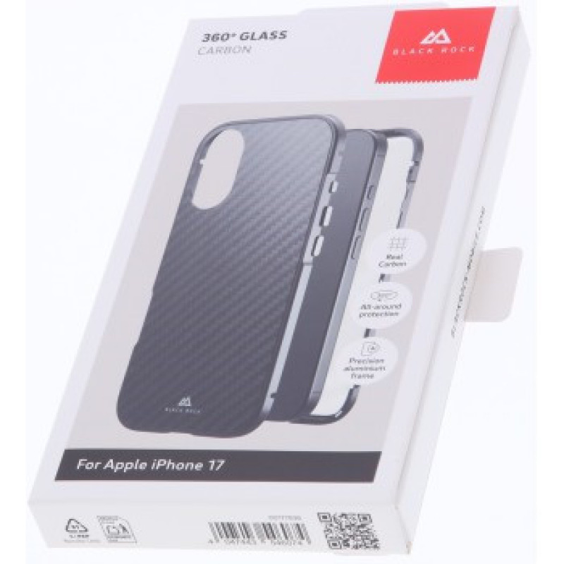 Black Rock 360° Glass, kryt pre Apple iPhone 17, sklenený, predný + zadný diel, karbónová úprava