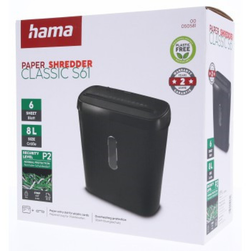 Hama Classic S61, skartovačka, priamy rez, 6 listov, bezpečnostná úroveň P2 T2 E2