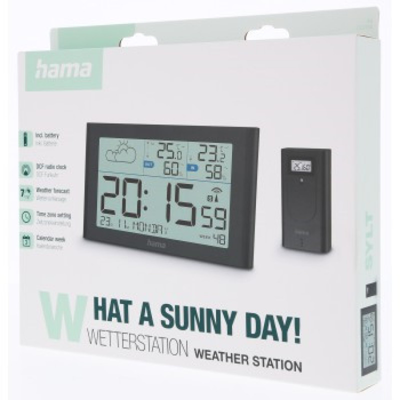 Hama Sylt, meteostanica, bezdrôtový senzor, DCF hodiny, teplota, vlhkosť, počasie, batérie, čierna