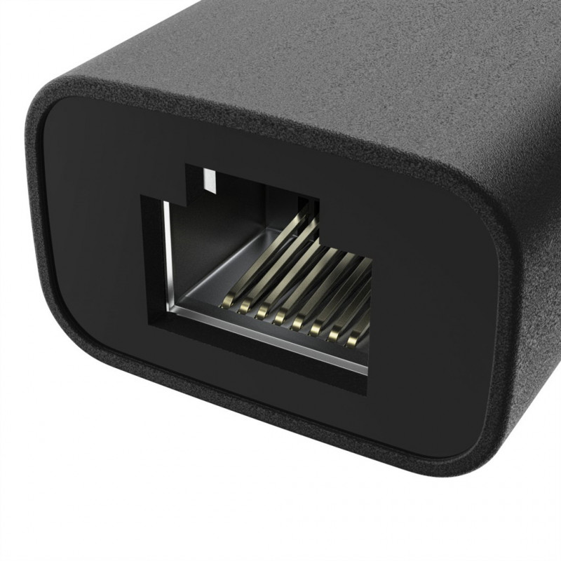 - umožňuje využiť USB-C zásuvku počítača pre pripojenie do siete LAN (napr. k routeru/modemu)